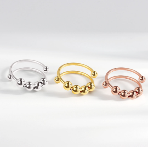 Discover the ultimate in stylish stress relief with our stunning new anxiety ring. This versatile piece is designed not just as a beautiful accessory but also as a functional tool to help you manage your anxiety and stress throughout the day.